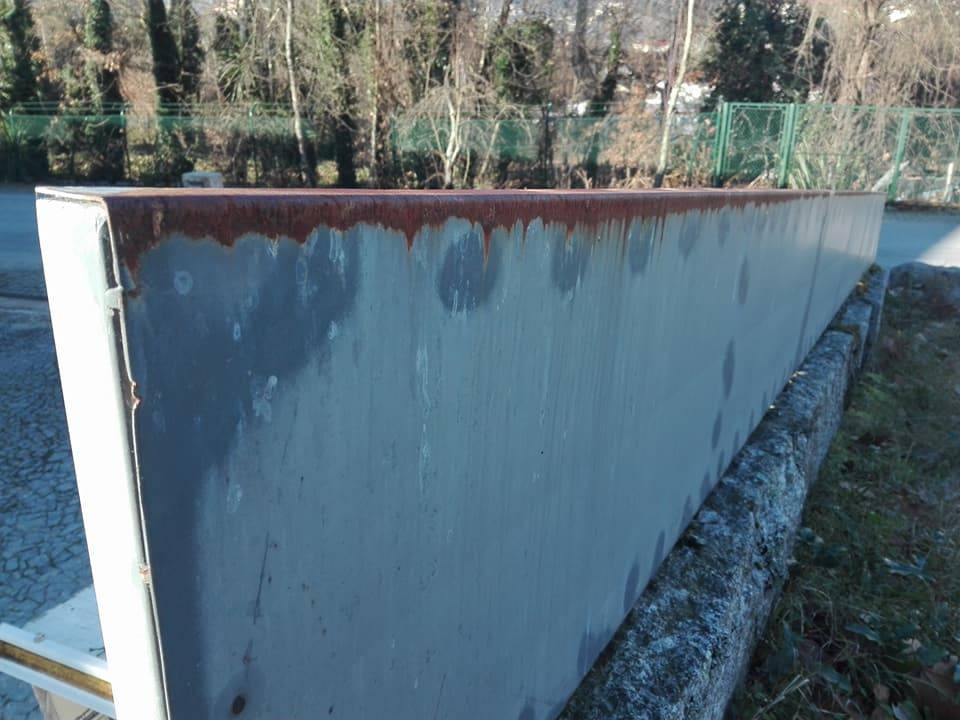Decapagem | Metalização de gradeamento com tinta | Ferrugem e posterior Lacagem electrostática.